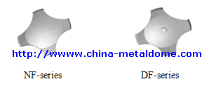 F series metal domes(snap domes) are with four-legged switches that were designed widely used in the printed circuit boards, flexible circuit boards and membrane switches. Whatever the life cycles and the click feeling, it’s far exceeds the circle shape metal domes. The life cycles of the most F-series metal domes can reach to 1,000,000 times.